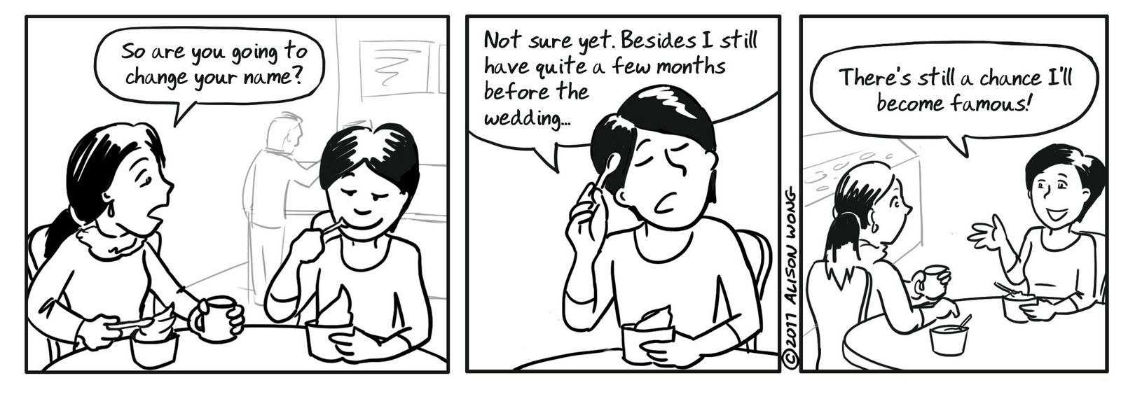 Wat voor achternaam ga ik aan nemen? Ga ik, volgens oud Nederlandse traditie, vanaf 24 augustus door het leven als Linda Naber? Of, zoals ik veel dames zie doen tegenwoordig: een dubbele achternaam aanhouden? Of, in de feministische stijl: mijn eigen achternaam houden?